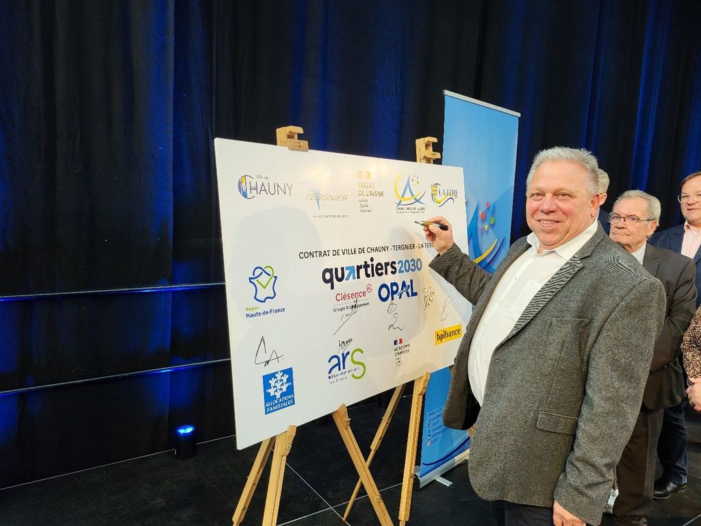 Signature du contrat de ville 2030 Inauguration de la centrale photovoltaïque à la station d’épuration de Chauny.