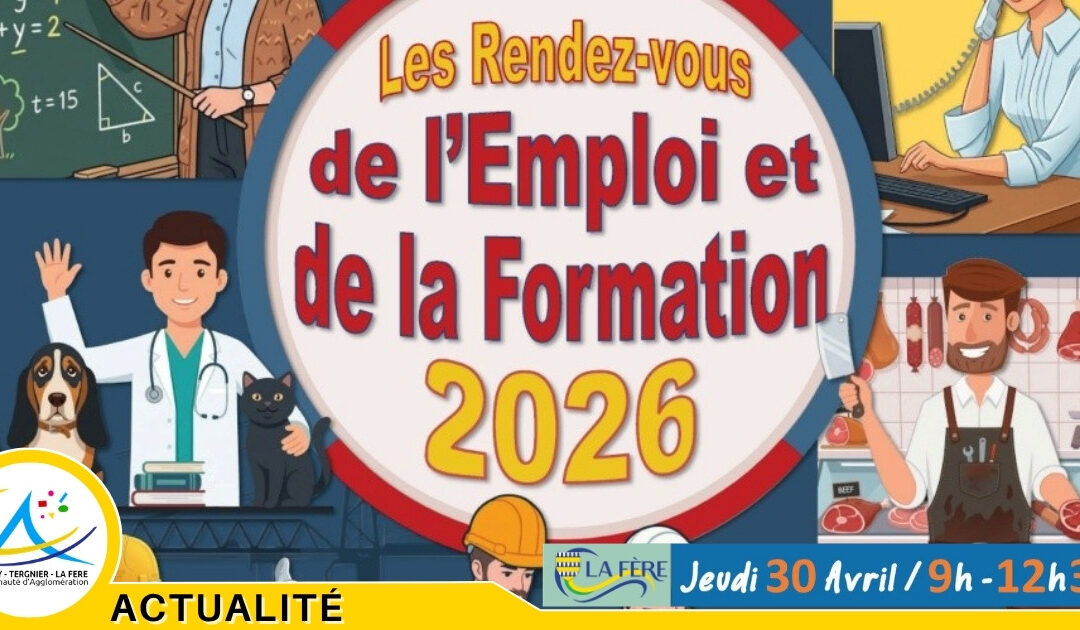 Dans le cadre de sa politique en faveur de l’emploi et de l’insertion professionnelle, la ville de La Fère organise la 5e édition des Rendez-vous de l’Emploi et de la Formation, le jeudi 30 avril 2026, de 9h à 12h30, à l’Espace Drouot.